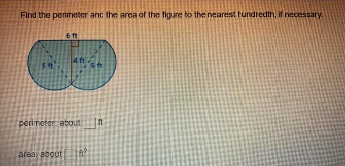 Here is all you need to know about find the perimeter of the figure to the nearest hundredth Round to the nearest hundredth. 3 on a question Find the perimeter of the figure to the nearest hundredth. Answers 99step-by-step explanation. Find the perimeter of this figure to the nearest hundredth use 3 14 to approximate pi p ft brainly questions have been designed to lead students to understand why we use a specific formula when we calculate the surface area of co task cards task busy teacher perimeter area surface area flashcards flashcards cooperative learning activities cooperative learning perimeter area surface area flashcards flashcards cooperative learning activities cooperative learning find the perimeter and the area of the figure to the chegg 7th grade geometry math unit using google for distance learning 7th grade math math geometry lessons Round your answer to the nearest hundredth.