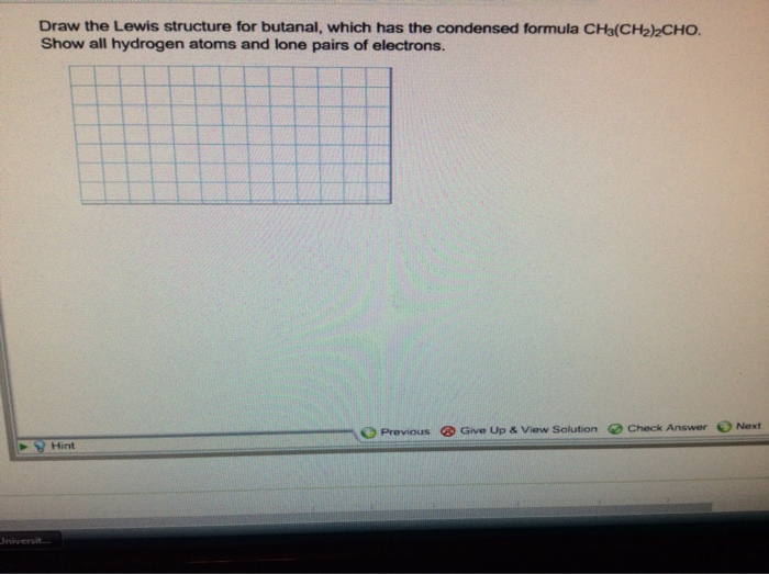 | Read Draw The Lewis Structure For Butanal Which Has The Condensed Formula Ch3 Ch2 2cho Show All Hydrogen Brainly |